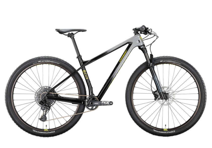 MTB, Unisex, Monocoque Carbon Rahmen, RockShox Recon Silver RL Federgabel (100mm), 12-Gang SRAM SX Schaltung, SRAM 11-50 Zähne Kassettenzahnkranz, Shimano MT410 Scheibenbremsen (180/160mm), Conway Laufräder, Continental Race King Performance 55-622 Bereifung